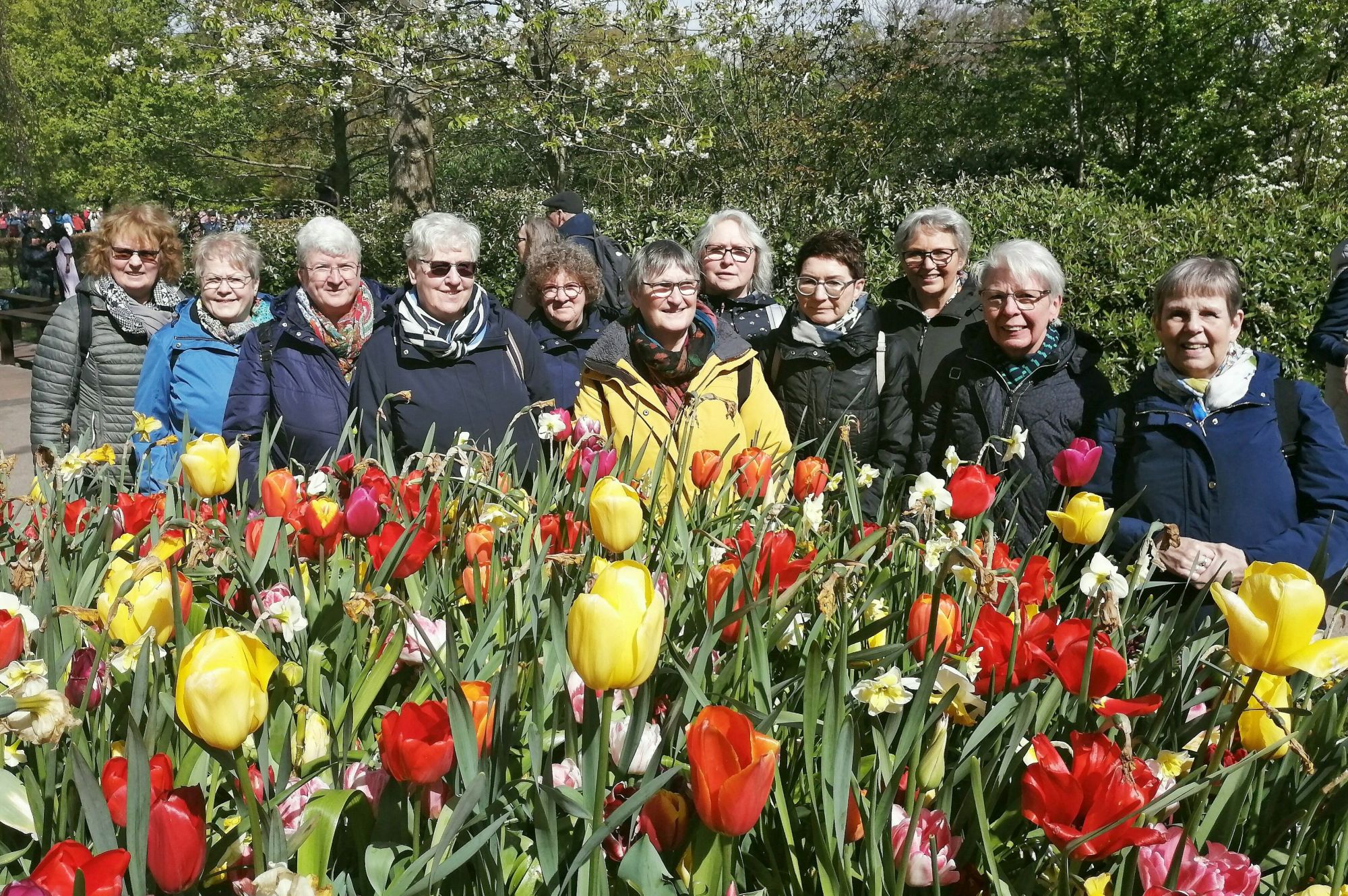 Am 7. März bestand der Frauenkreis der Jakobusgemeinde 35 Jahre. Das war ein Anlass, mal wieder eine Tagesfahrt zu planen. Diesmal war das Ziel am 20. April der Keukenhof in den Niederlanden zur Tulpenblüte. Es ist dort ein wunderschöner Park mit sehr viel blühenden Tulpen und anderen Frühlingsblühern. Zwischendurch stärkten sich die elf Teilnehmerinnen mit leckeren holländischen Pommes Frites.
