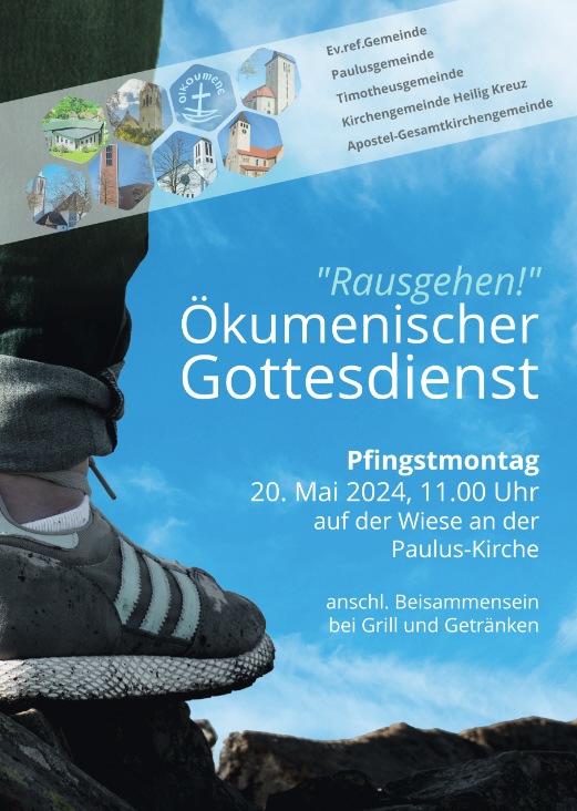 Am Pfingstmontag, 20. Mai, laden die Apostel-Gesamtkirchengemeinde, die Paulusgemeinde, die Timotheusgemeinde, die Evangelisch-reformierte Gemeinde und die Kirchengemeinde Heilig Kreuz zum ökumenischen Gottesdienst ein.